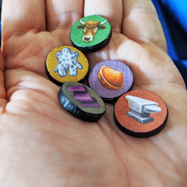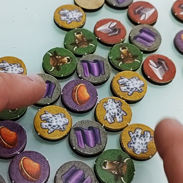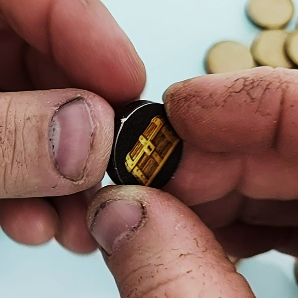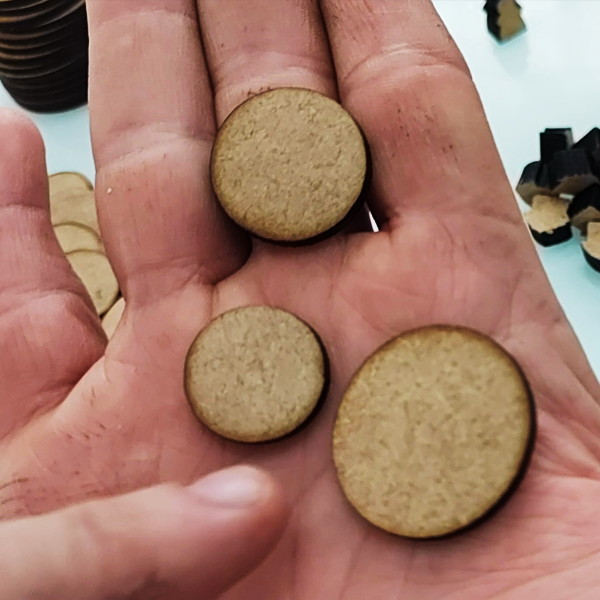 Uma das coisas mais difíceis de transformar em token, são as peças redondas. Mas você pode enviar um arquivo vetorial do corte para lojas que façam corte a laser em MDF. Aqui em Brasília eu pesquisei bastante e você acha lugares que cobram 20,00 a 100,00 um simples corte tamanho A4. Tem que pesquisar.
