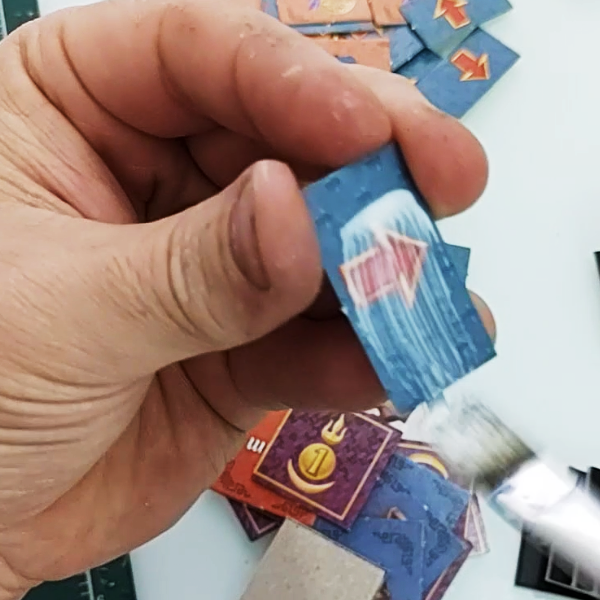 Em um euro normal bem produzido as cartas do HdK seriam tiles. E foi o primeiro ajuste que fiz. Como publiquei acima as cartas tem uma gramatura menor que o padrão que estamos acostumados.