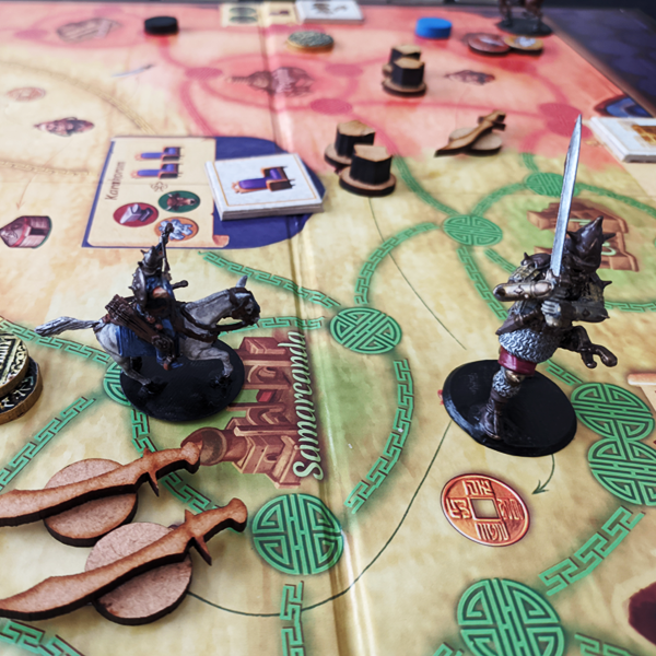 O jogo vem com pinos clássicos padrão Estrela como marcador da jogador, inclusive Gengis Khan é um pino branco que tem movimentos no tabuleiro.